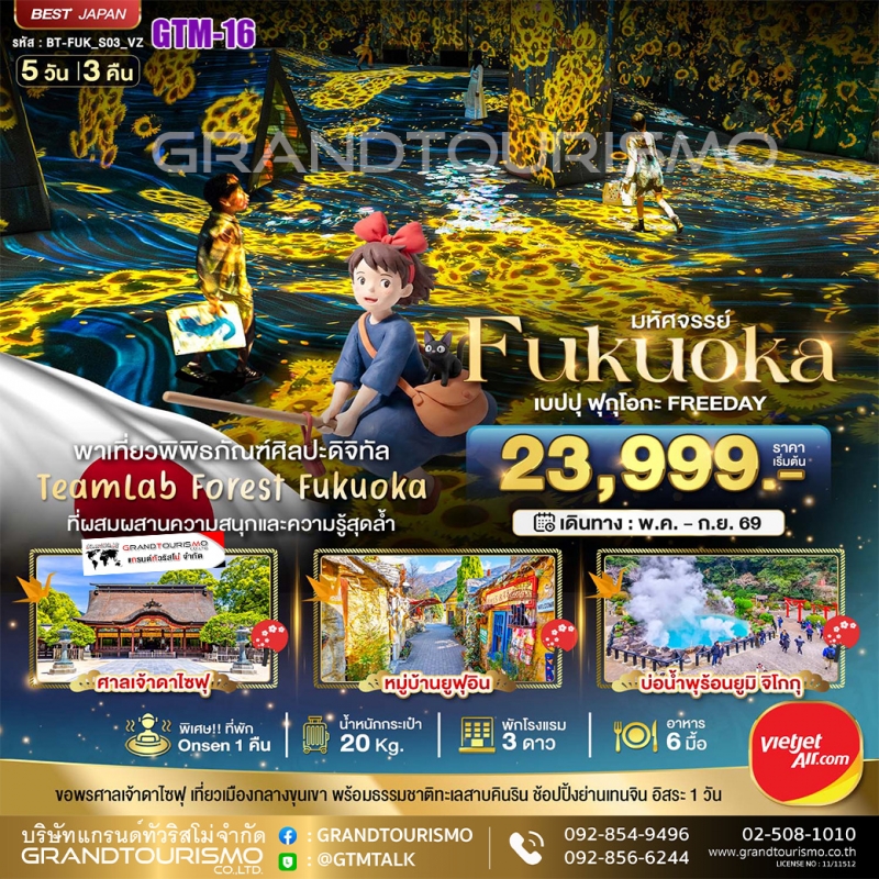 ทัวร์ญี่ปุ่น ฟุกุโอกะ (อิสระ1วัน) เบปปุ ยูฟุอินฟลอร์รัล ทะเลสาบคินริน ศาลเจ้าดาไซฟุ Team Lab 5วัน3คืน พ.ค.-ก.ย.69 BY VZ