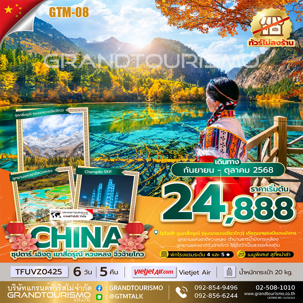 ทัวร์จีน เฉิงตู เขาสี่ดรุณี หวงหลง จิ่วจ้ายโกว (ไม่ลงร้าน) 6วัน 5คืน ก.ย.-ต.ค.68