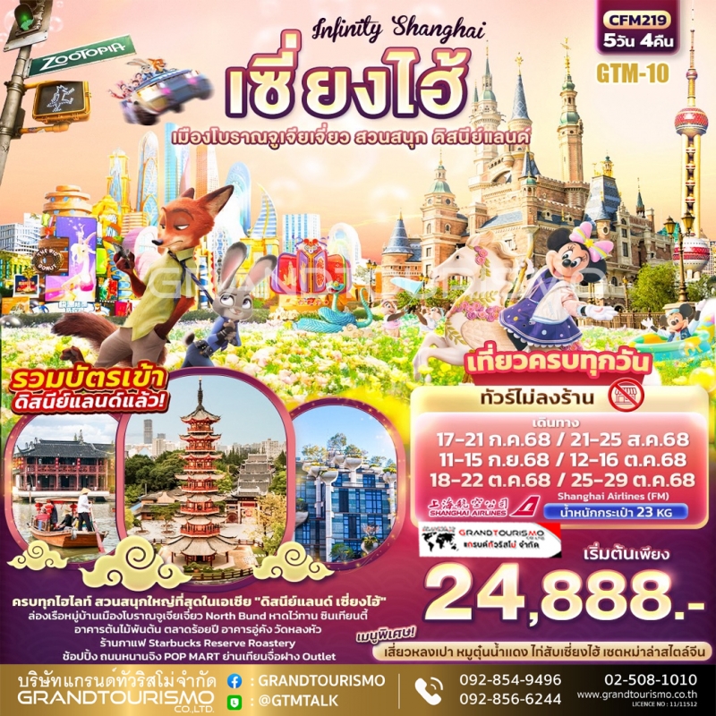 ทัวร์จีน เซี่ยงไฮ้ ดิสนีย์แลนด์ ไม่ลงร้าน ซินเทียนตี้ อาคารต้นไม้พันต้น อาคารอู่คัง North bund ถนนนานกิง 5 วัน 4 คืน ก.ค.-ต.ค. 68