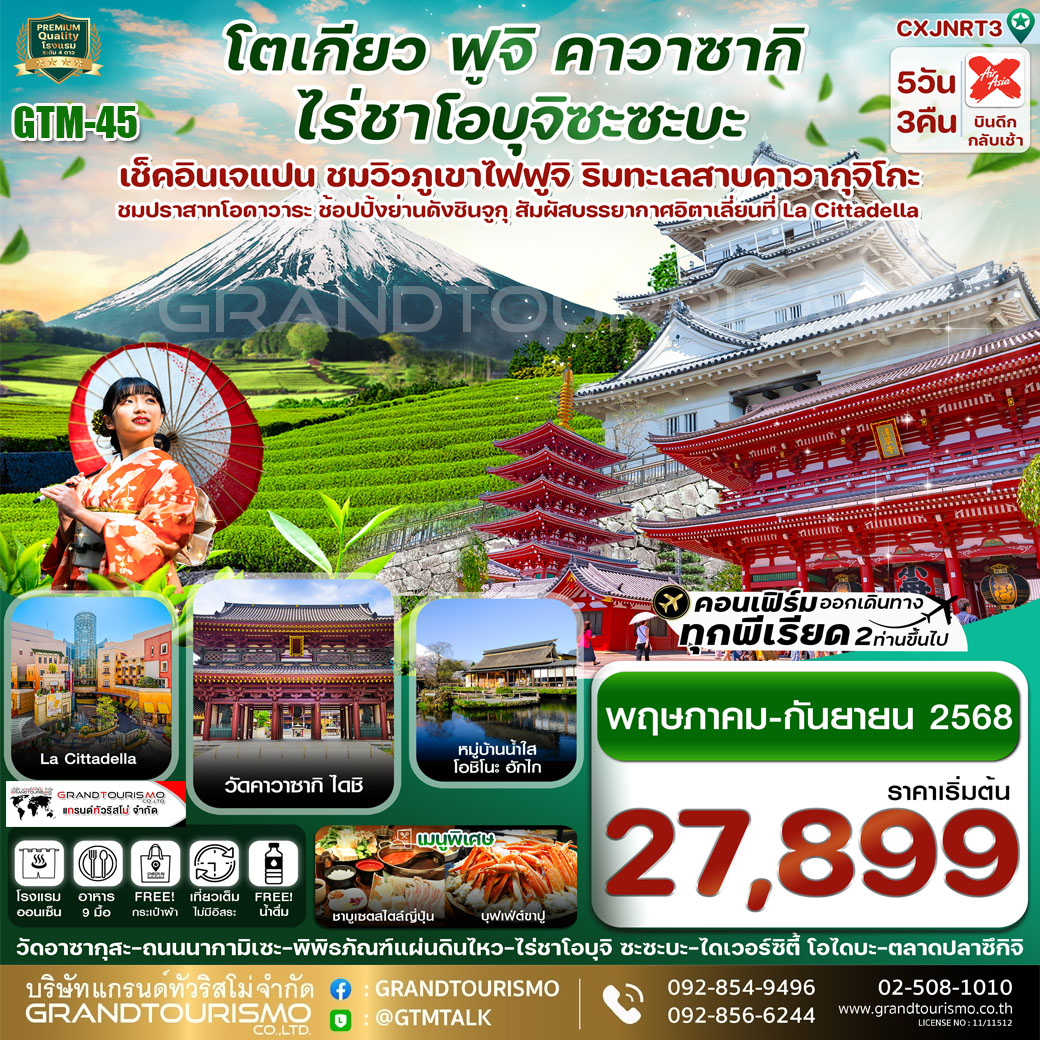 ทัวร์ญี่ปุ่น โตเกียว คาวาซากิ ฟูจิ 5วัน3คืน พ.ค.-ก.ย.68
