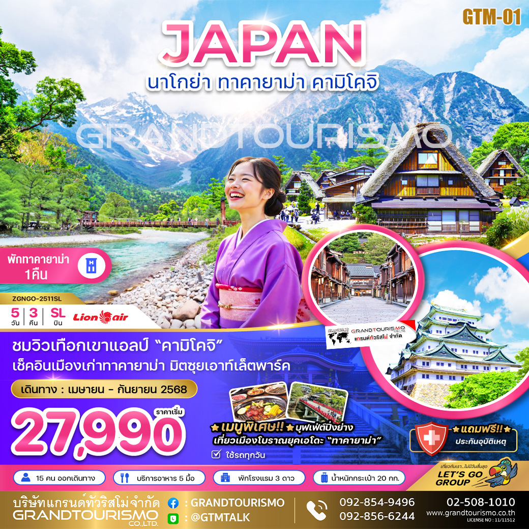 ทัวร์ญี่ปุ่น นาโกย่า ทาคายาม่า คามิโคจิ ชิราคาวาโกะ ทาคายาม่า 5วัน3คืน เม.ย.-ก.ย.68