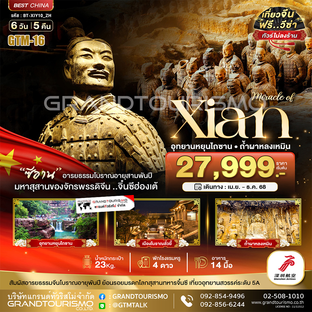 ทัวร์จีน ซีอาน หยุนเฉิง ลั่วหยาง หยุนไถซาน ถ้ำผาหลงเหมิน ไม่ลงร้าน 6วัน5คืน เม.ย.-พ.ย.68