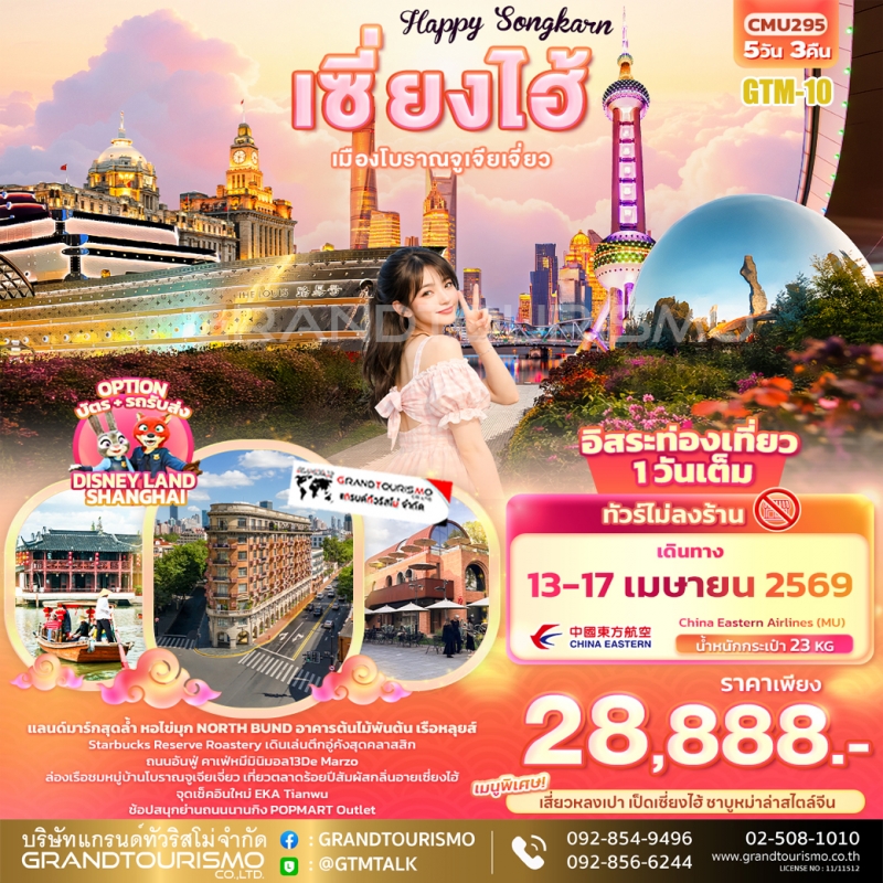 ทัวร์จีน เซี่ยงไฮ้ ซูโจว เมืองโบราณซานถัง ขึ้นหอไข่มุก (ทัวร์เซี่ยงไฮ้ไม่ลงร้าน) 5วัน3คืน เม.ย.-มิ.ย.68