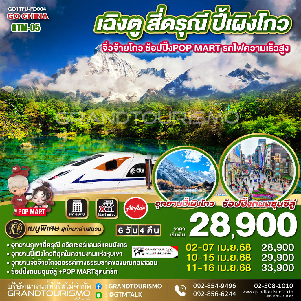 ทัวร์จีน เฉิงตู สี่ดรุณี ปี้เผิงโกว จิ่วจ้ายโกว (นั่งรถไฟความเร็วสูง) (ทัวร์จีนไม่ลงร้าน) 6วัน4คืน เม.ย.68