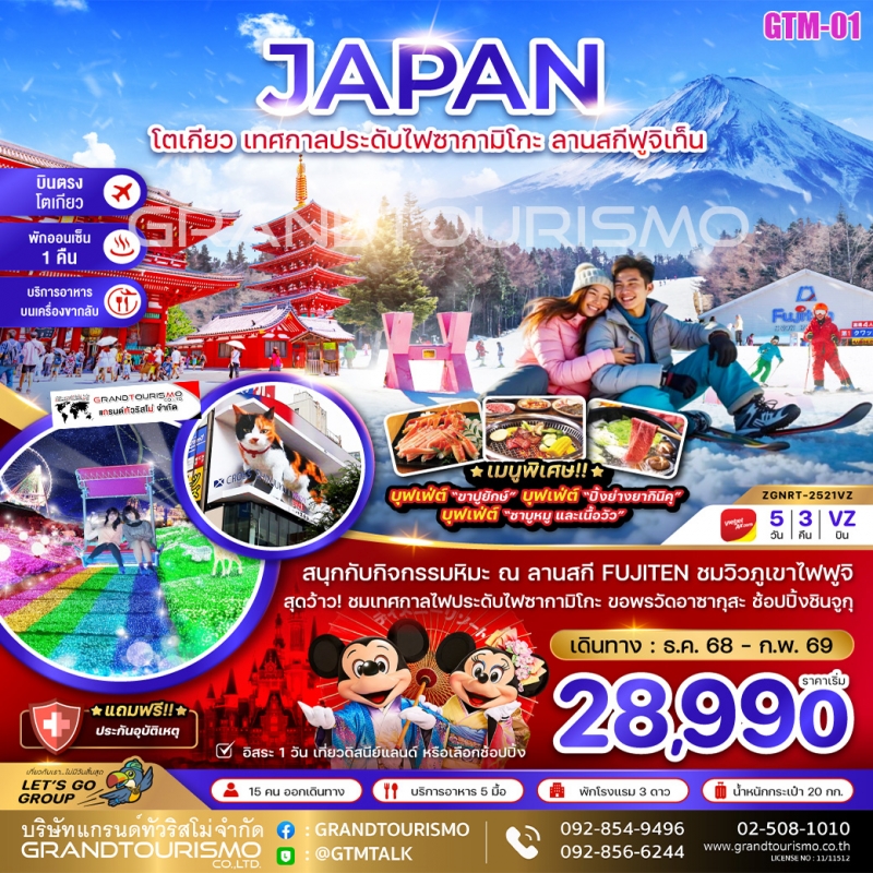 ทัวร์ญี่ปุ่น โตเกียว ฟูจิ ลานสกี (อิสระ1วัน) 6วัน4คืน ก.พ.-มี.ค.68