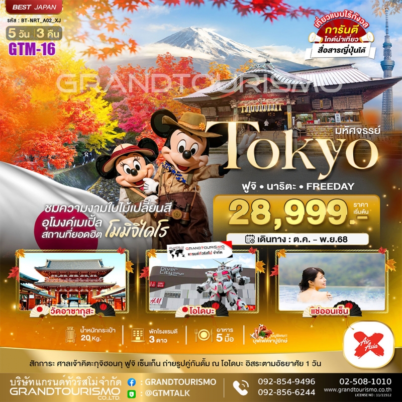 ทัวร์ญี่ปุ่น โตเกียว ฟูจิ นาริตะ ยามานาชิ อุโมงค์เมเปิ้ล (อิสระ1วัน) 5วัน3คืน ต.ค.-พ.ย.68