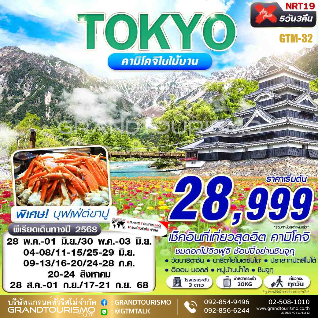 ทัวร์ญี่ปุ่น โตเกียว คามิโคจิ หมู่บ้านน้ำใส ปราสาทมัตสึโมโต้ บุฟเฟ่ต์ขาปูยักษ์ ออนเซน 5 วัน 3 คืน พ.ค. - ก.ย. 68
