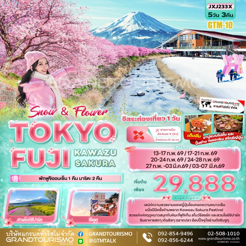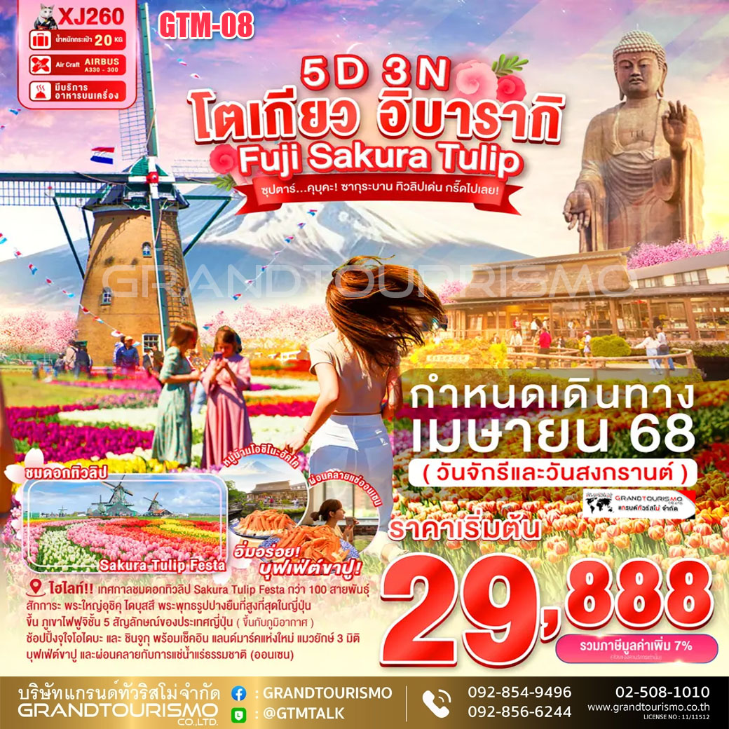 ทัวร์ญี่ปุ่น โตเกียว อิบารากิ ฟูจิ ชมซากุระ ชมดอกทิวลิป 5วัน3คืน เม.ย.68