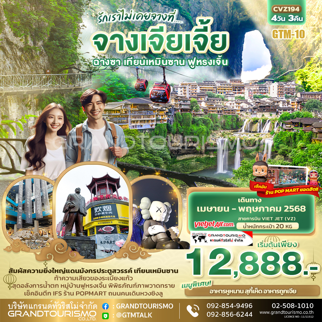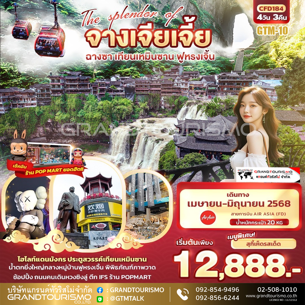 ทัวร์จีน ฉางซา จางเจียเจี้ย เทียนเหมินซาน ฟูฟรงเจิ้น ระเบียงกระจก ประตูสวรรค์ POP MART 4 วัน 3 คืน ก.ย.-ต.ค. 68