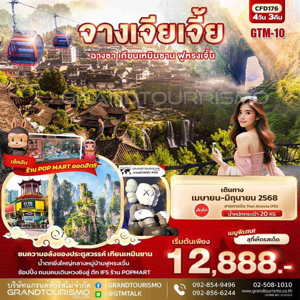 ทัวร์จีน จางเจียเจี้ย ฉางซา เทียนเหมินซาน ฟูหรงเจิ้น POPMART 4วัน3คืน เม.ย.-มิ.ย.68