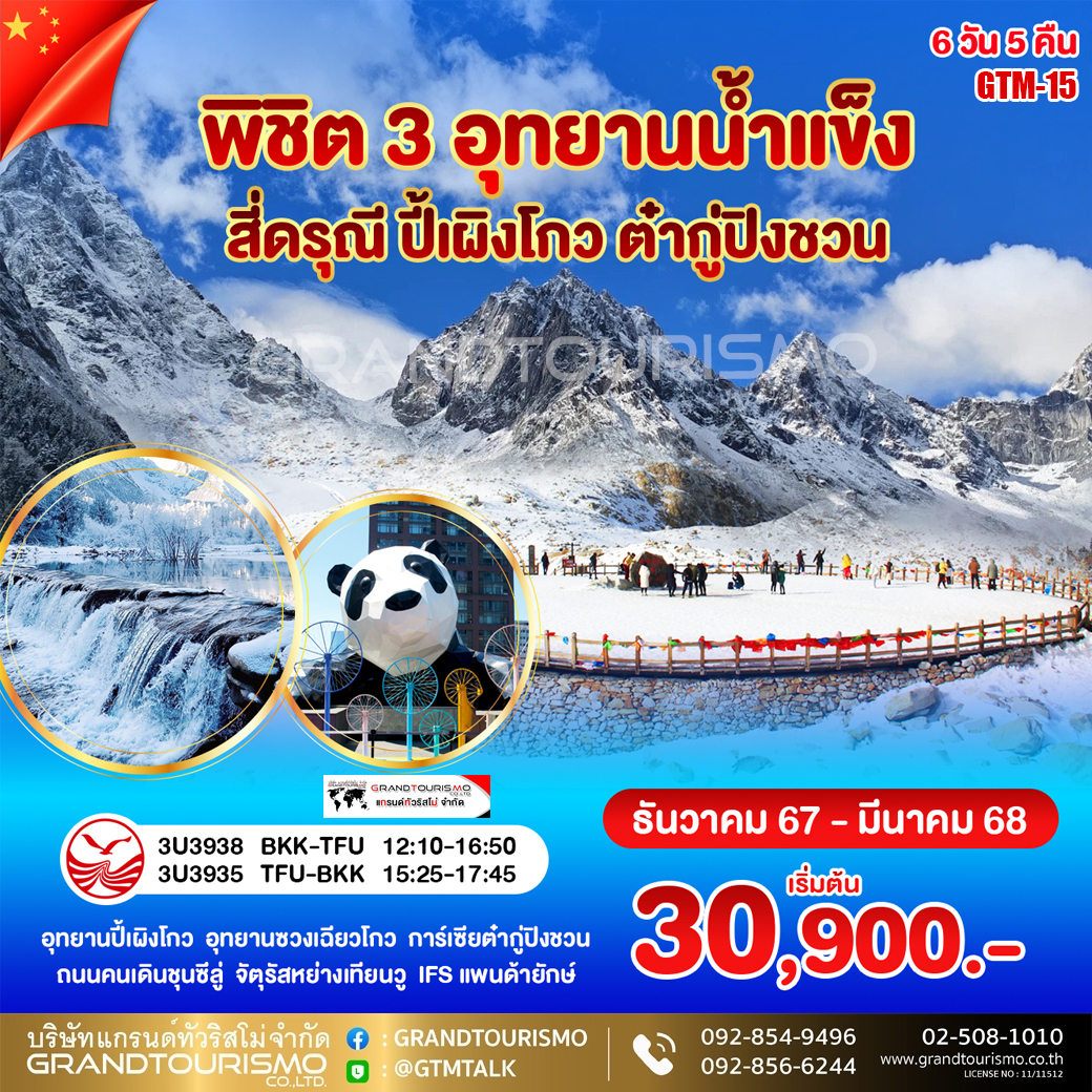 ทัวร์จีน เฉิงตู อุทยานน้ำแข็ง สี่ดรุณี ปี้เผิงโกว ต๋ากู่ปิงชวน 6วัน5คืน ก.พ.-มี.ค.68