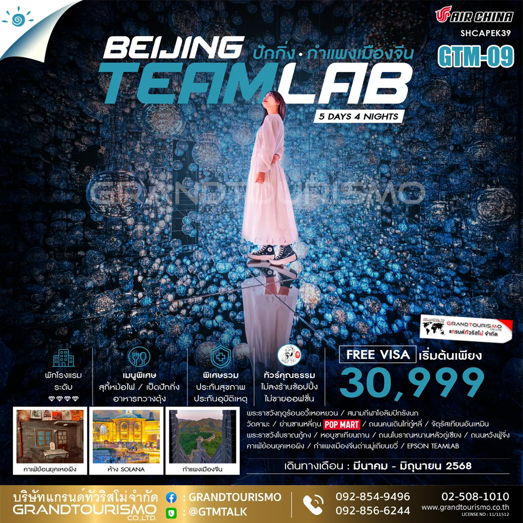 ทัวร์จีน ปักกิ่ง กำเเพงเมืองจีน TEAMLAB (ทัวร์ปักกิ่งไม่ลงร้าน) 5วัน4คืน มี.ค.-มิ.ย.68