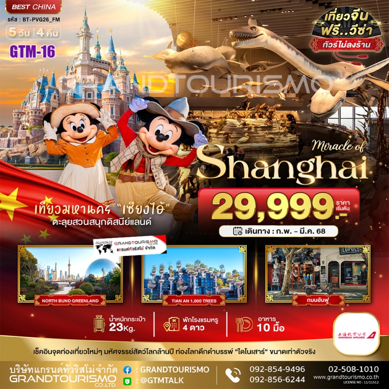 ทัวร์จีน เซี่ยงไฮ้ ดิสนีย์แลนด์ เมืองโบราณจูเจียวเจียว ไม่ลงร้าน 5วัน4คืน ก.พ.-มิ.ย.68