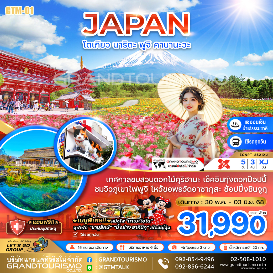 ทัวร์ญี่ปุ่น โตเกียว นาริตะ ฟูจิ คานางาวะ ทุ่งดอกป๊อปปี้ ชินจูกุ วัดอาซากุสะ 5 วัน 3 คืน 30 พ.ค.-03 มิ.ย. 68