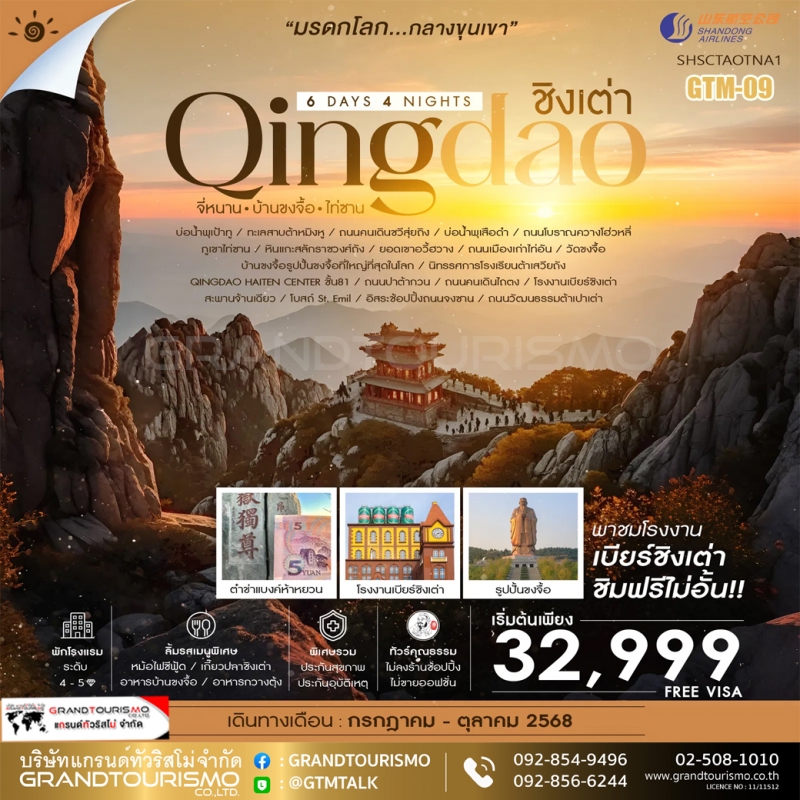 ทัวร์จีน ชิงเต่า ไม่ลงร้านช้อป จี่หนาน ถนนปาต้ากวน เมืองหนีซาน บ้านขงจื้อ ไท่ซาน 6 วัน 4 คืน ก.ค.-ต.ค. 68