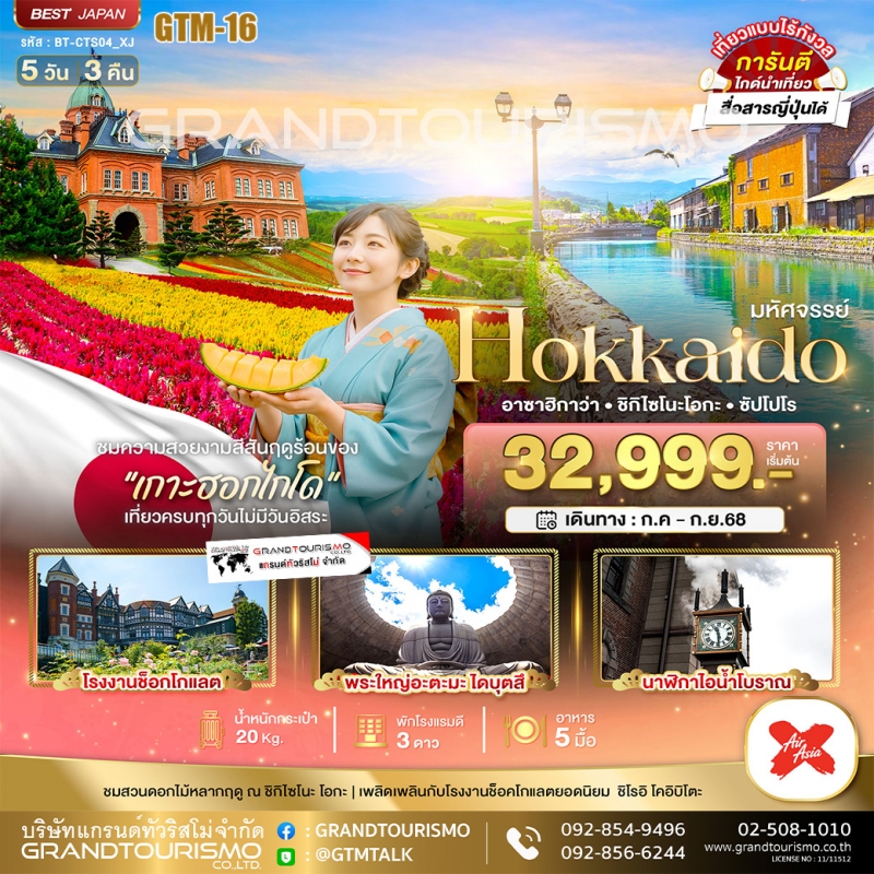 ทัวร์ญี่ปุ่น ฮอกไกโด อาซาฮิกาว่า ชิกิไซโนะ โอกะ ซัปโปโร 5วัน3คืน ก.ค.-ก.ย.68