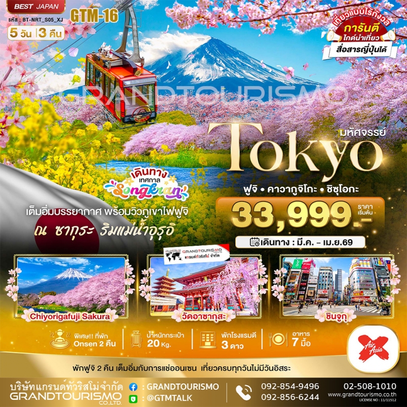 ทัวร์ญี่ปุ่น โตเกียว สวนกองเก็นโดโคเอ็น คาวาโกเอะ สวนอูเอโนะ 5วัน3คืน มี.ค.69