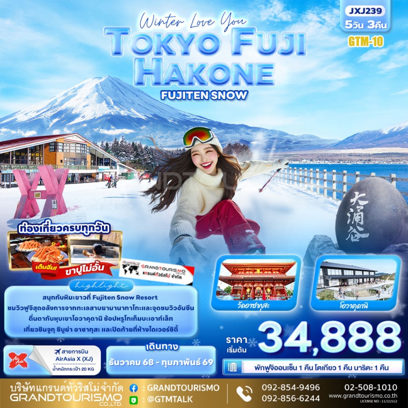 ทัวร์ญี่ปุ่น โตเกียว ฟูจิ ลานสกีฟูจิเทน พักออนเซน บุฟเฟ่ต์ขาปูยักษ์ ทะเลสาบยามานากาโกะ 5 วัน 3 คืน ธ.ค. 68 - ก.พ. 69