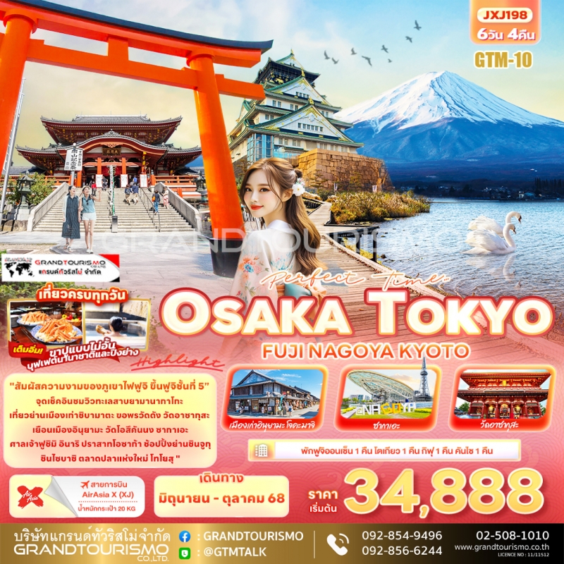 ทัวร์ญี่ปุ่น โตเกียว โอซาก้า ภูเขาไฟฟูจิ นาโกย่า เกียวโต ปราสาทโอซาก้า วัดอาซากุสะ ตลาดปลาโทโยสุ แช่ออนเซน บุฟเฟ่ต์ขาปูยักษ์ 6 วัน 4 คืน มิ.ย.-ก.ย. 68