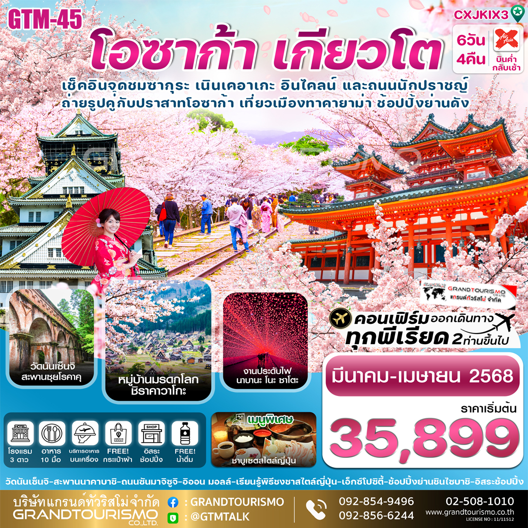 ทัวร์ญี่ปุ่น โอซาก้า เกียวโต ทาคายาม่า (อิสระ1วัน) 6วัน4คืน มี.ค.-เม.ย.68