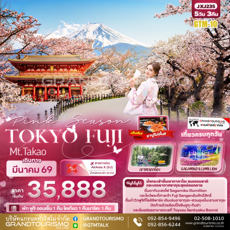 ทัวร์ญี่ปุ่น โตเกียว ฟูจิ เคเบิลคาร์ภูเขาทาคาโอะ สวนอุเอโนะ กินซ่า งานประดับไฟซากามิโกะ วัดอาซากุสะ ชินจูกุ ออนเซ็น บุฟเฟ่ต์ขาปูยักษ์ 5 วัน 3 คืน มี.ค. 69