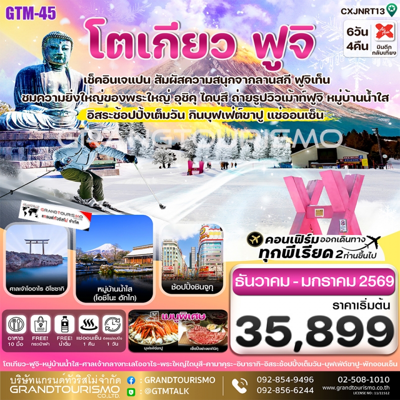 ทัวร์ญี่ปุ่น โตเกียว ฟูจิ คามาคุระ อิบารากิ หมู่บ้านน้ำใส ลานสกีฟูจิเทน (อิสระ1วัน) ธ.ค.68-ม.ค.69 6วัน4คืน