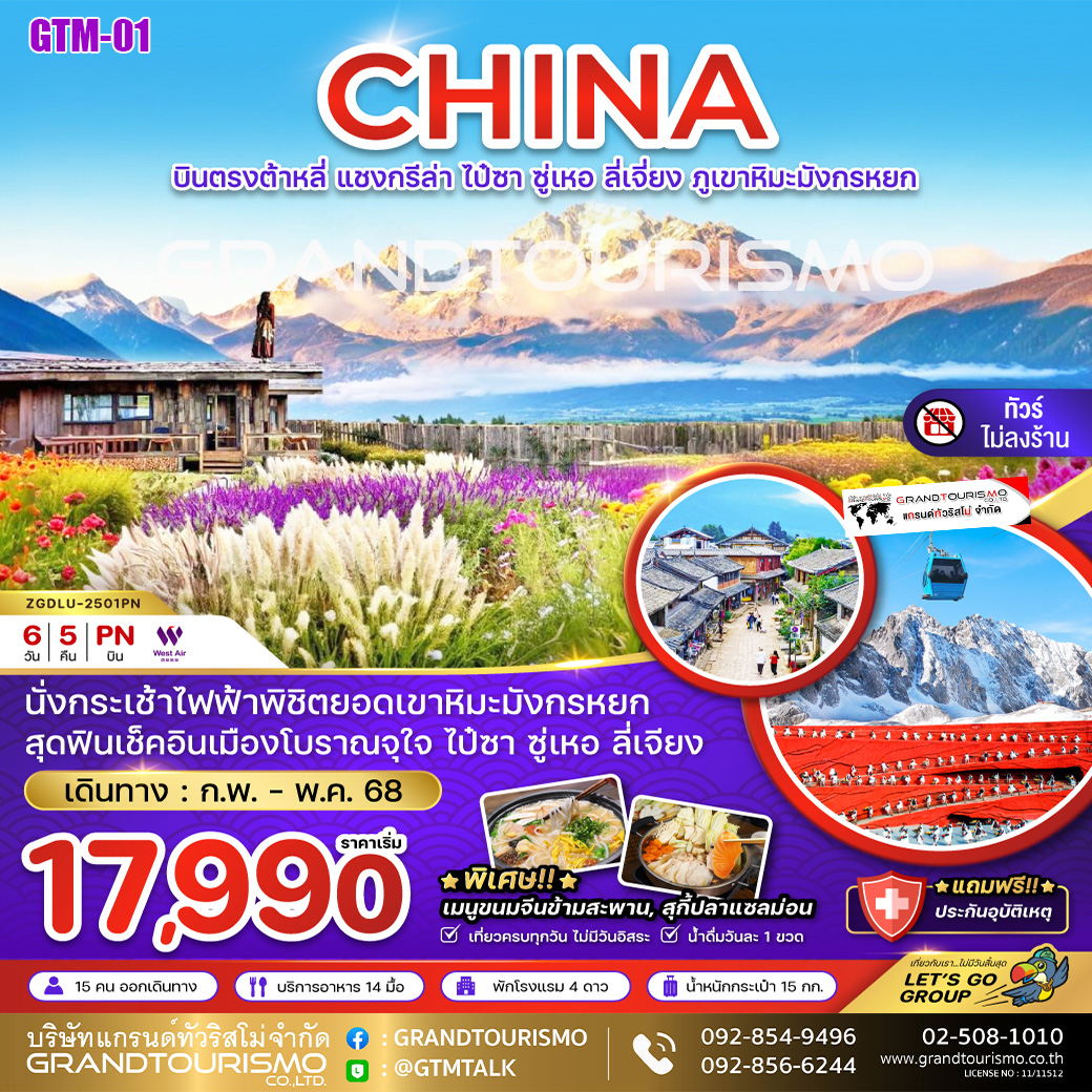 ทัวร์จีน บินตรงต้าหลี่ แชงกรีล่า ไป๋ซา ซู่เหอ ลี่เจียง ภูเขาหิมะมังกรหยก (ไม่ลงร้าน) 6วัน5คืน มี.ค.-พ.ค.68