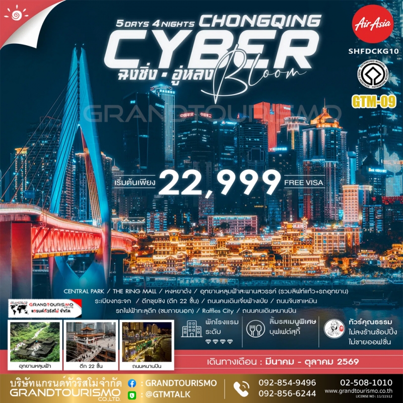 ทัวร์จีน ฉงชิ่ง อู่หลง ไม่ลงร้าน ถนนจินซาเหมิน อุทยานสวรรค์ ตึกขุยซิง หงหยาต้ง รถไฟฟ้าทะลุตึก เมืองโบราณสือปาที 5 วัน 4 คืน มี.ค.-ต.ค. 69