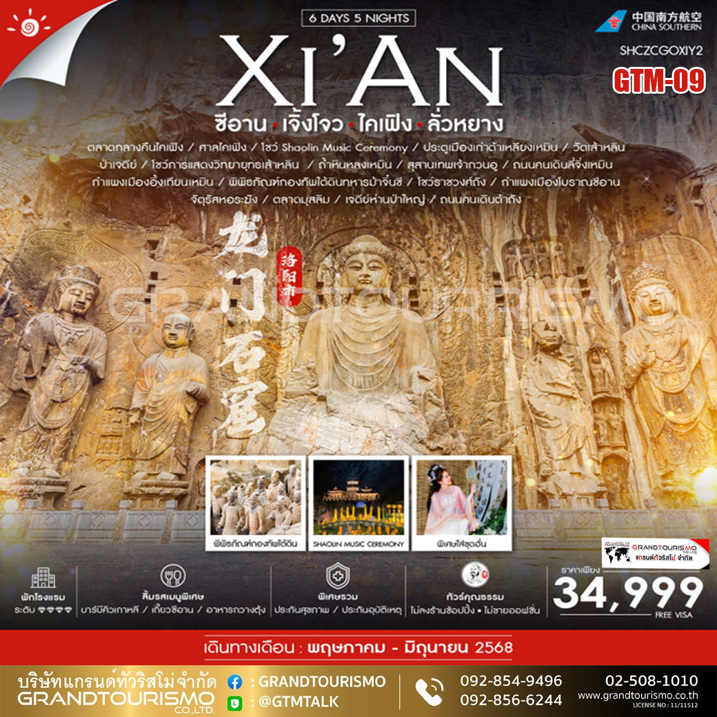 ทัวร์จีน ซีอาน เจิ้งโจว ไคเฟิง ลั่วหยาง (ทัวร์ซีอานไม่ลงร้าน) 6วัน5คืน พ.ค.-มิ.ย.68