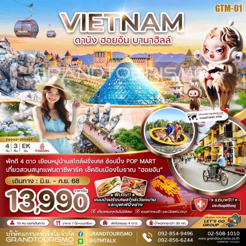 ทัวร์เวียดนามกลาง ดานัง ฮอยอัน บานาฮิลส์ POPMART (บินหรู FULL SERVICE)4วัน3คืน ก.ค-ก.ย.68