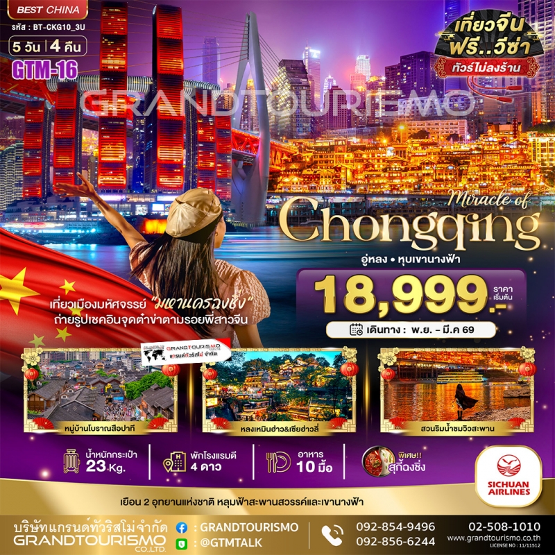 ทัวร์จีน เฉิงตู สี่ดรุณี หวงหลง จิ่วจ้ายโกว นั่งรถไฟความเร็วสูง (รวมทิปไกด์-ไม่ลงร้าน) 6วัน5คืน ต.ค.68