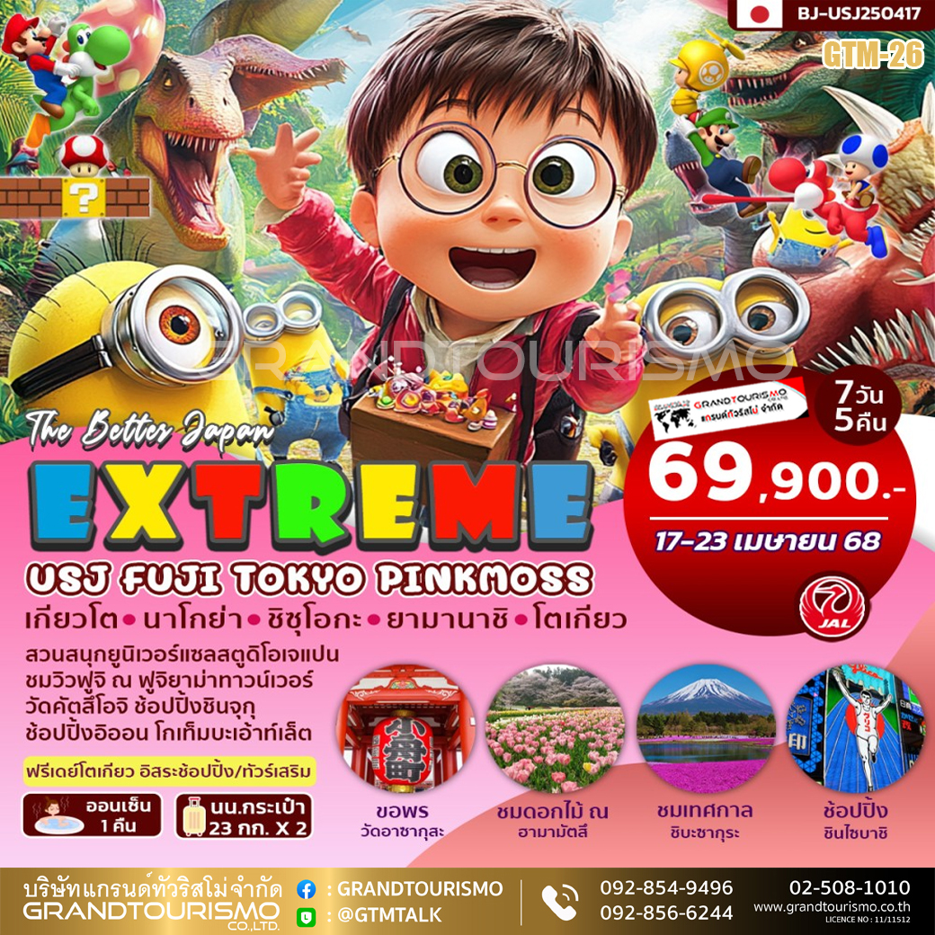 ทัวร์ญี่ปุ่น โอซาก้า อิสระ 1 วัน ยูนิเวอร์แซล เกียวโต นาโกย่า ชิซุโอกะ ยามานาชิ โตเกียว ฟูจิ พิงค์มอส แช่ออนเซน ขาปูยักษ์ 7 วัน 5 คืน 17-23 เม.ย. 68