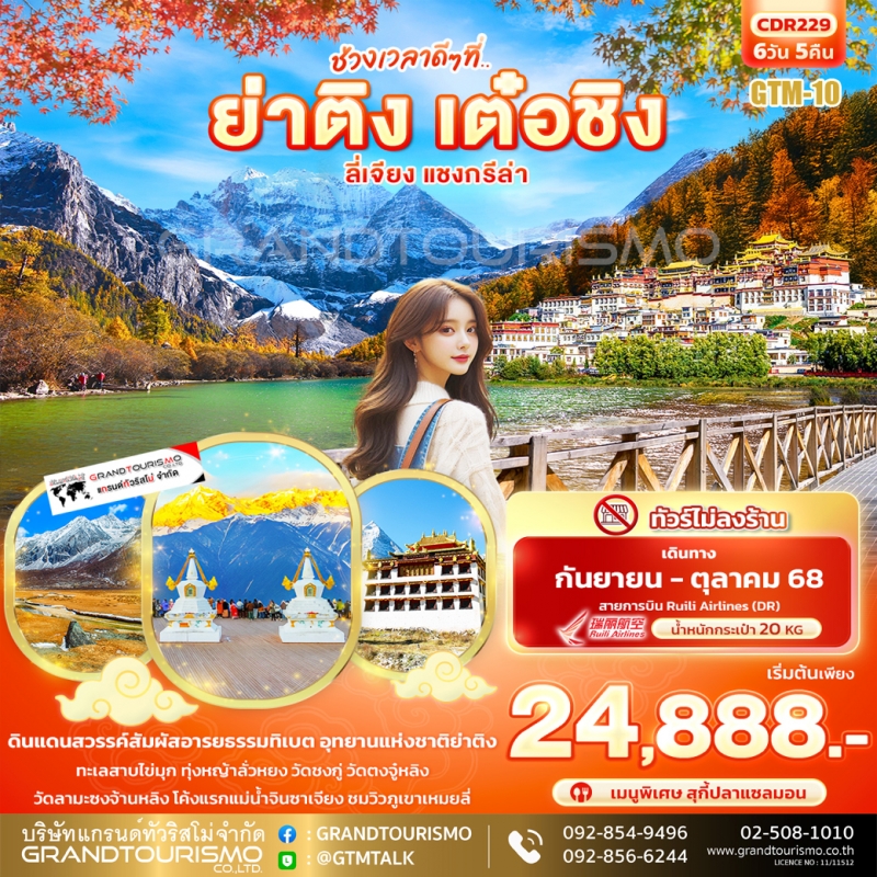 ทัวร์จีน ย่าติง ไม่ลงร้าน เต๋อชิง ลี่เจียง แชงกรีล่า ทะเลสาบไข่มุก ทุ่งหญ้าลั่วหรง ภูเขาหิมะเหมยลี่ วัดลามะซงจ้านหลิน 6 วัน 5 คืน ก.ย.-ต.ค. 68