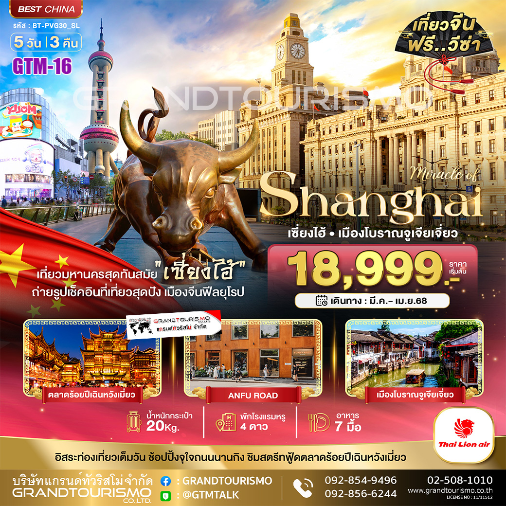 ทัวร์จีน เซี่ยงไฮ้ เมืองโบราณจูเจียวเจียว เดอะบันด์ อิสระ1วัน 5วัน3คืน มี.ค.-เม.ย.68
