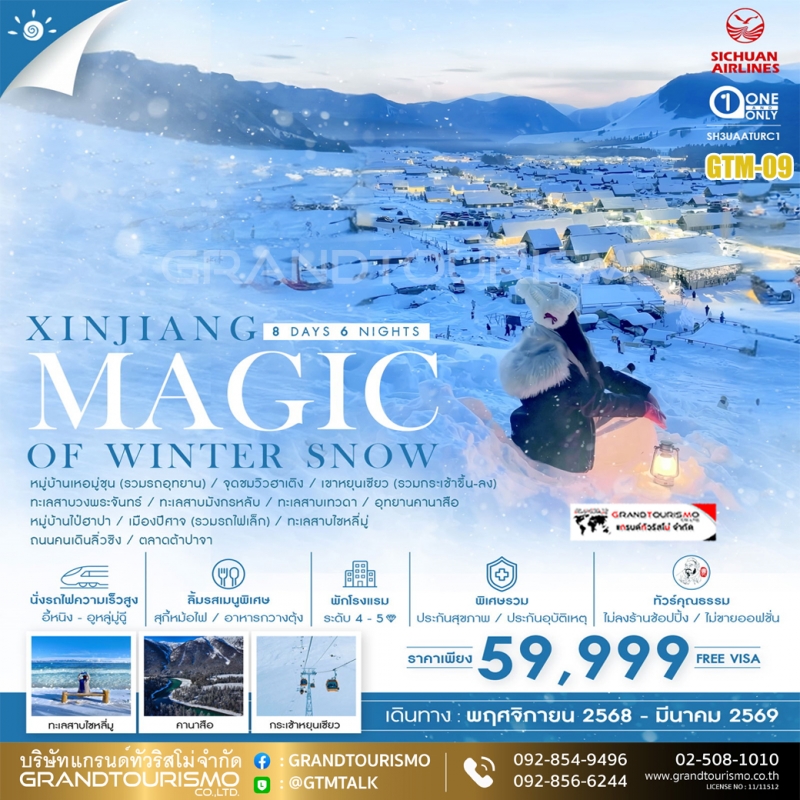 ทัวร์จีน ซินเจียงเหนือ ไม่ลงร้าน อาเล่อไท่ คานาสือ อูหลู่มู่ฉี หมู่บ้านเหอมู่ชุน เมืองปู้เอ่อจิน ทะเลสาบไซหลี่มู่ นั่งรถไฟความเร็วสูง 8 วัน 6 คืน พ.ย. 68 - มี.ค. 69