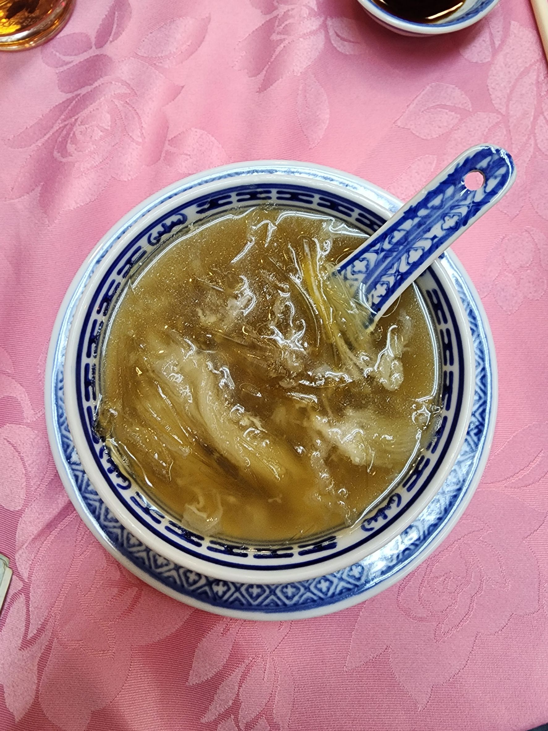 หูฉลามตุ๋น: เมนูนี้ใช้หูฉลามที่ต้มจนเปื่อยและมีรสชาติที่ละเอียดอ่อน นิยมเสิร์ฟพร้อมกับซอสสูตรพิเศษของทางร้าน