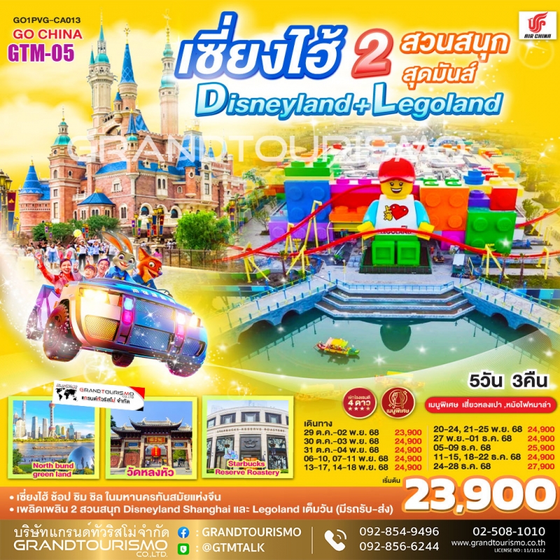 ทัวร์จีน เซี่ยงไฮ้ ดิสนียืแลนด์ เลโก้แลนด์ เมืองโบราณซีเป่า วัดหลงหัว (ไม่ลงร้าน) 5วัน3คืน ต.ค.-ธ.ค.68