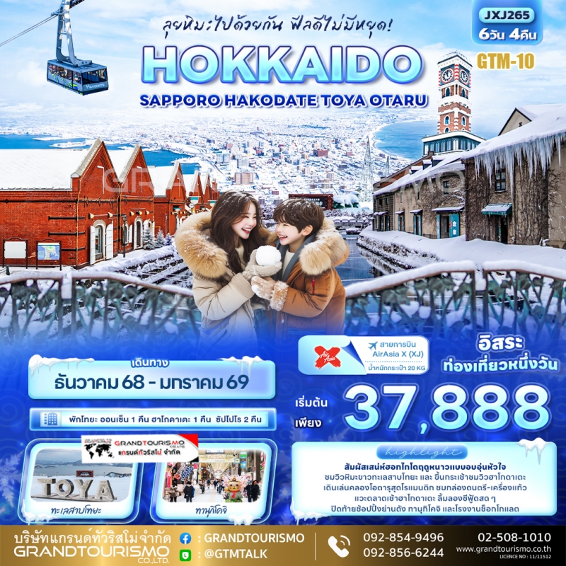 ทัวร์ญี่ปุ่น ฮอกไกโด อิสระ 1 วัน โอตารุ โทยะ ออนเซ็น นั่งกระเช้า Hakodateyama Ropeway ฮาโกดาเตะ ซัปโปโร 6 วัน 4 คืน ธ.ค. 68 - ม.ค. 69