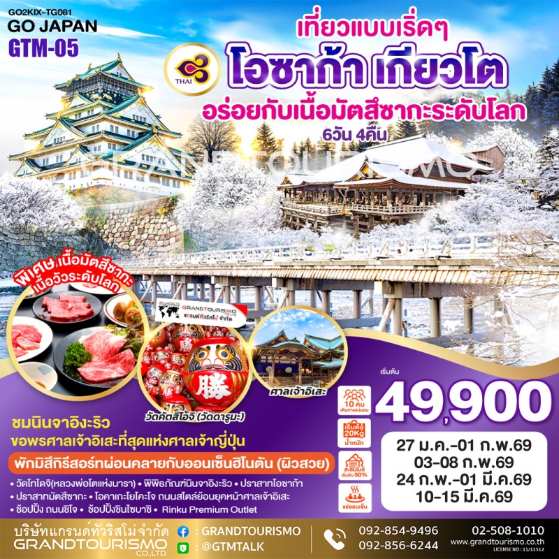 ทัวร์ญี่ปุ่น โอซาก้า นารา อิงะ มิตซึซากะ เกียวโต 6วัน4คืน ก.พ.-มี.ค.69