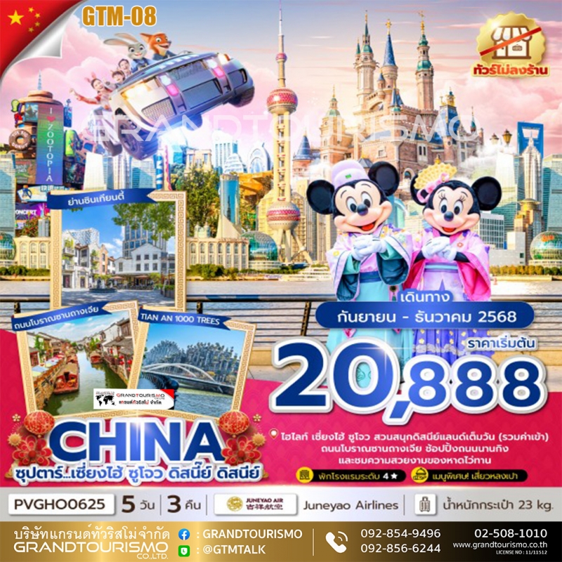 ทัวร์จีน เซี่ยงไฮ้ ซูโจว หาดไว่ทาน ดิสนีย์แลนด์ (ไม่ลงร้าน) 5วัน3คืน ก.ย.-ธ.ค.68