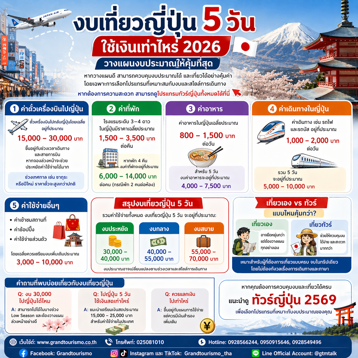 คำถามที่พบบ่อยเกี่ยวกับงบเที่ยวญี่ปุ่น