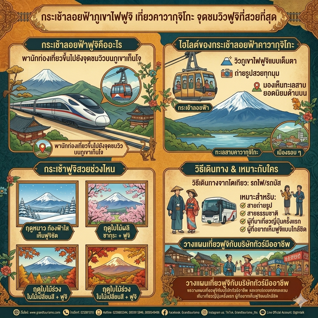 กระเช้าลอยฟ้ามักอยู่ในโปรแกรมยอดนิยม เช่น โตเกียว ฟูจิ 5 วัน