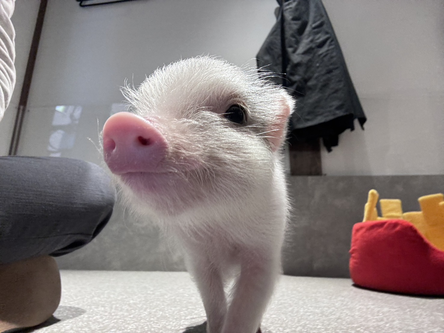 น้องหมูมีนิสัยขี้อ้อน เป็นมิตร และชอบเข้ามาหาคน ทำให้บรรยากาศเต็มไปด้วยความสนุกและความน่ารัก
