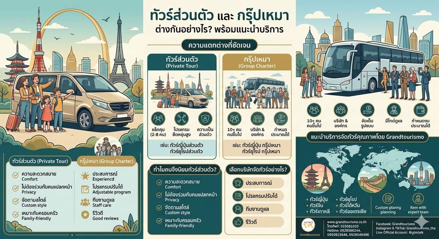 ทัวร์ส่วนตัว กรุ๊ปเหมา ทัวร์กรุ๊ปเหมา ต่างกันอย่างไร | Grandtourismo