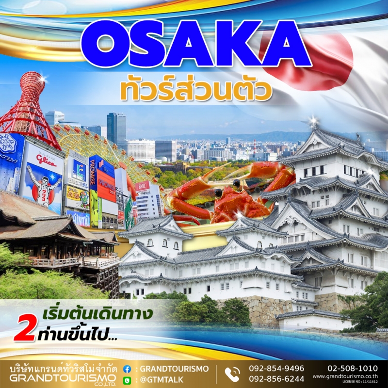 ทัวร์ญี่ปุ่น โอซาก้าแบบส่วนตัว 5วัน 3คืน บินการบินไทย พักโรงแรม3ดาว ไม่รวมอาหารเที่ยงและค่ำ (ไม่รวมวันหยุดและเทศกาล)