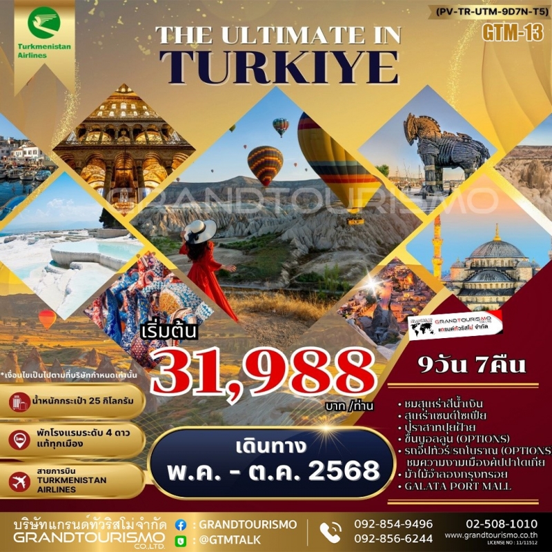 ทัวร์ตุรเคีย อิสตันบลู อังการ่า คัปปาโดเกีย ปามุคคาเล ไอวาลิค ซานัคคาเล่(เปลี่ยนเครื่อง)9วัน7คืน พ.ค.-ต.ค.68