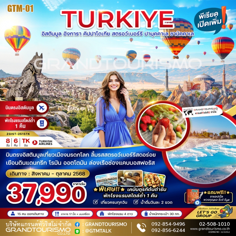 ทัวร์ตุรเคีย อิสตันบูล อังการา คัปปาโดเกีย สวนสตรอว์เบอร์รี ปามุคคาเล่ ซานัคคาเล 8วัน6คืน ส.ค.-พ.ย.68