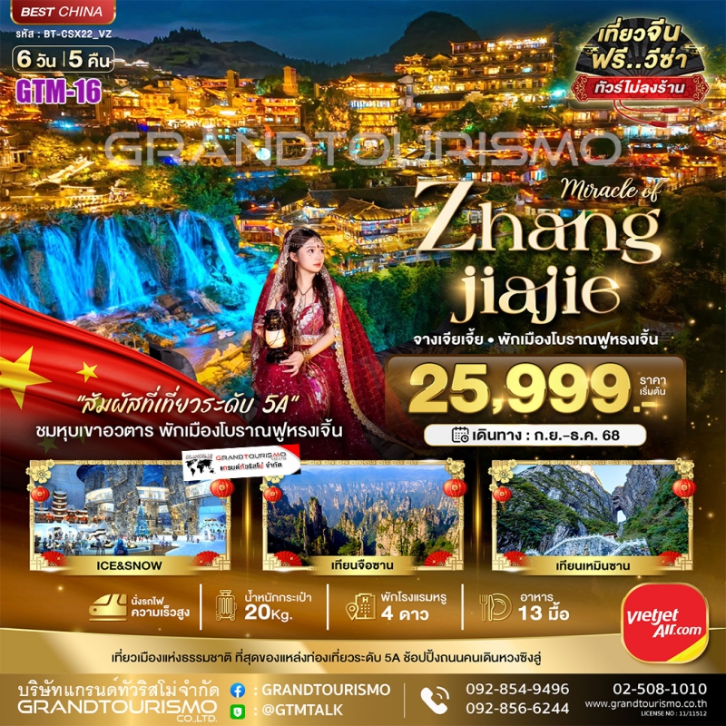 ทัวร์จีน ฉางซา จางเจียเจี้ย เฟิงหวง ฟูหรงเจิ้น (ทัวร์ไม่ลงร้าน) 5วัน4คืน ม.ค.-ธ.ค.68 BY VZ