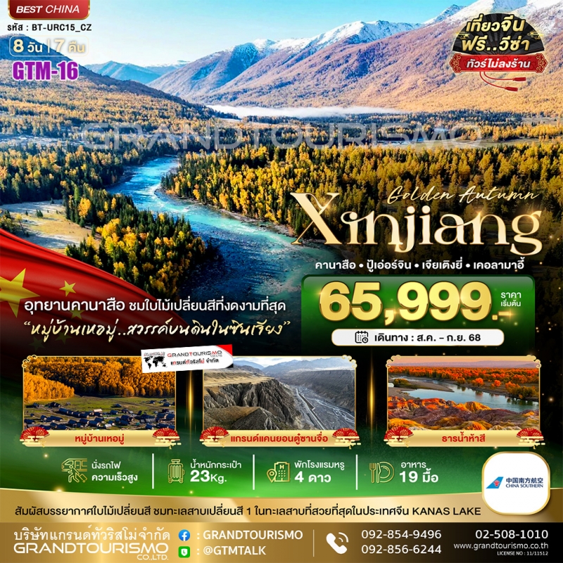 ทัวร์จีน ซินเจียงเหนือ คานาสือ ปู้เอ่อร์จิ้น เคอลามาอี้ อูรูมูฉี (ไม่ลงร้าน) 8วัน7คืน ก.ย.68