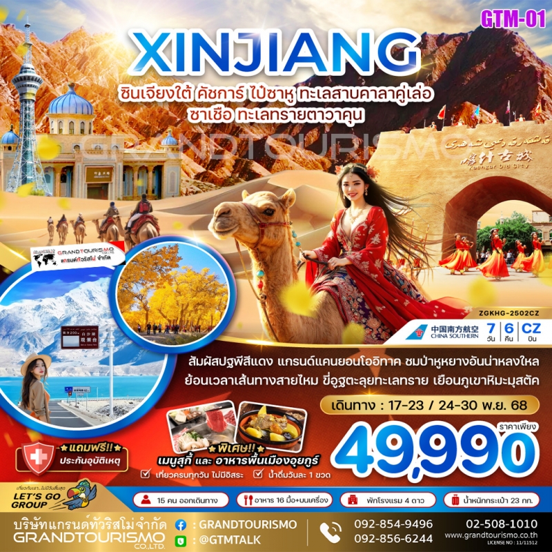ทัวร์จีน ซินเจียง คัชการ์ ไป๋ซาหู ทะเลสาบคาลาคู่เล่อ ซาเชือ ทะเลทรายตาวาคุน (ไม่ลงร้าน)(พักเครื่อง) 7วัน6คืน พ.ย.68